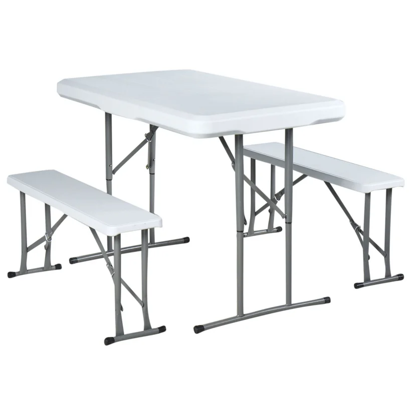 Si estás buscando una mesa para disfrutar al aire libre con amigos y familia, la Mesa de exterior plegable de plástico y acero con bancos es la opción ideal. Con su diseño práctico y plegable, podrás llevarla a cualquier lugar y disfrutar de un espacio cómodo para compartir momentos especiales. Además, su material resistente la hace ideal para soportar el uso diario y las condiciones climáticas.