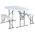 Esta mesa es perfecta para 4 personas y cuenta con un tamaño de 100 cm de largo y 65 cm de ancho. Su estructura de acero y cubierta de plástico la hacen resistente y fácil de limpiar. Además, es plegable, lo que la hace fácil de transportar y guardar. La mesa se puede plegar para ocupar menos espacio, lo que la hace ideal para llevarla a camping o picnics.