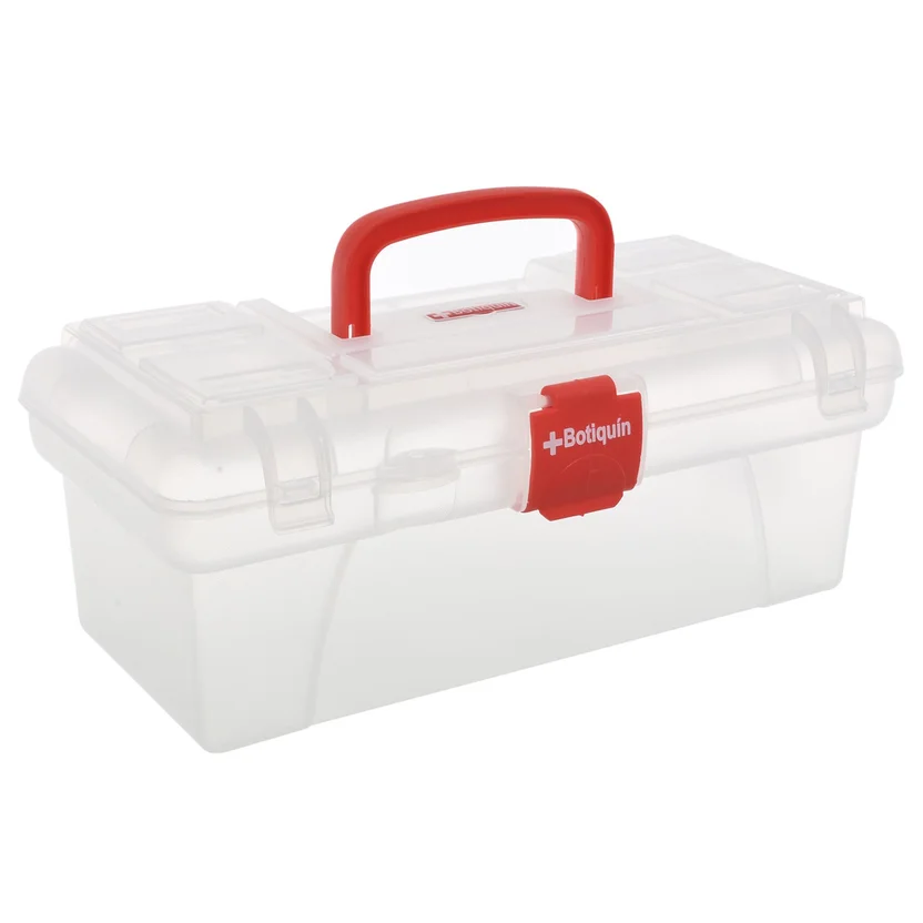 Caja estilo botiquín con multiples compartimientos y manija. Cuenta con dos niveles y traba