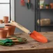 Esta pala de jardín, con un mango de madera, es ideal para trabajos de jardinería. Su origen es Brasil y su tipo es "Palas". El material de la hoja es de acero y el color es naranjo. Su tipo de pala es pequeña.