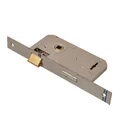 Esta cerradura de embutir cuenta con un pestillo entero de zamak y un cerrojo rectangular con cuerpo de acero laminado. Sus cuatro plaquetas de acero laminado y resortes de acero inoxidable aseguran durabilidad y resistencia. Además, incluye llaves de bronce forjado para un acceso seguro. Con un frente de 212 mm y una caja de 127 mm, esta cerradura es ideal para puertas.