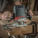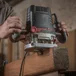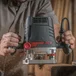Base regulable con capacidad de corte de hasta 55 mm | botón traba que evita accionamiento involuntario | botón traba del eje para facilitar el cambio de fresas | rodamientada | fresa 6 mm