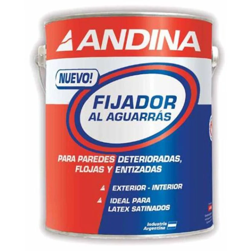 Este fijador al aguarrás, de la marca Andina, es perfecto para preparar tus paredes. Su origen es Argentina y su color es traslúcido. Entre sus características, destaca su capacidad para sellar y fijar superficies deterioradas, y es ideal para acabados satinados. El rendimiento por capa es de 14 m2.