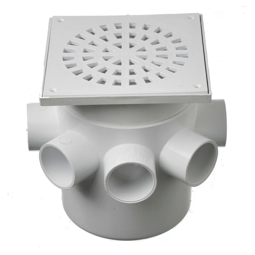 Pileta de patio pvc 5 entradas 15 x 15 rejilla blanca