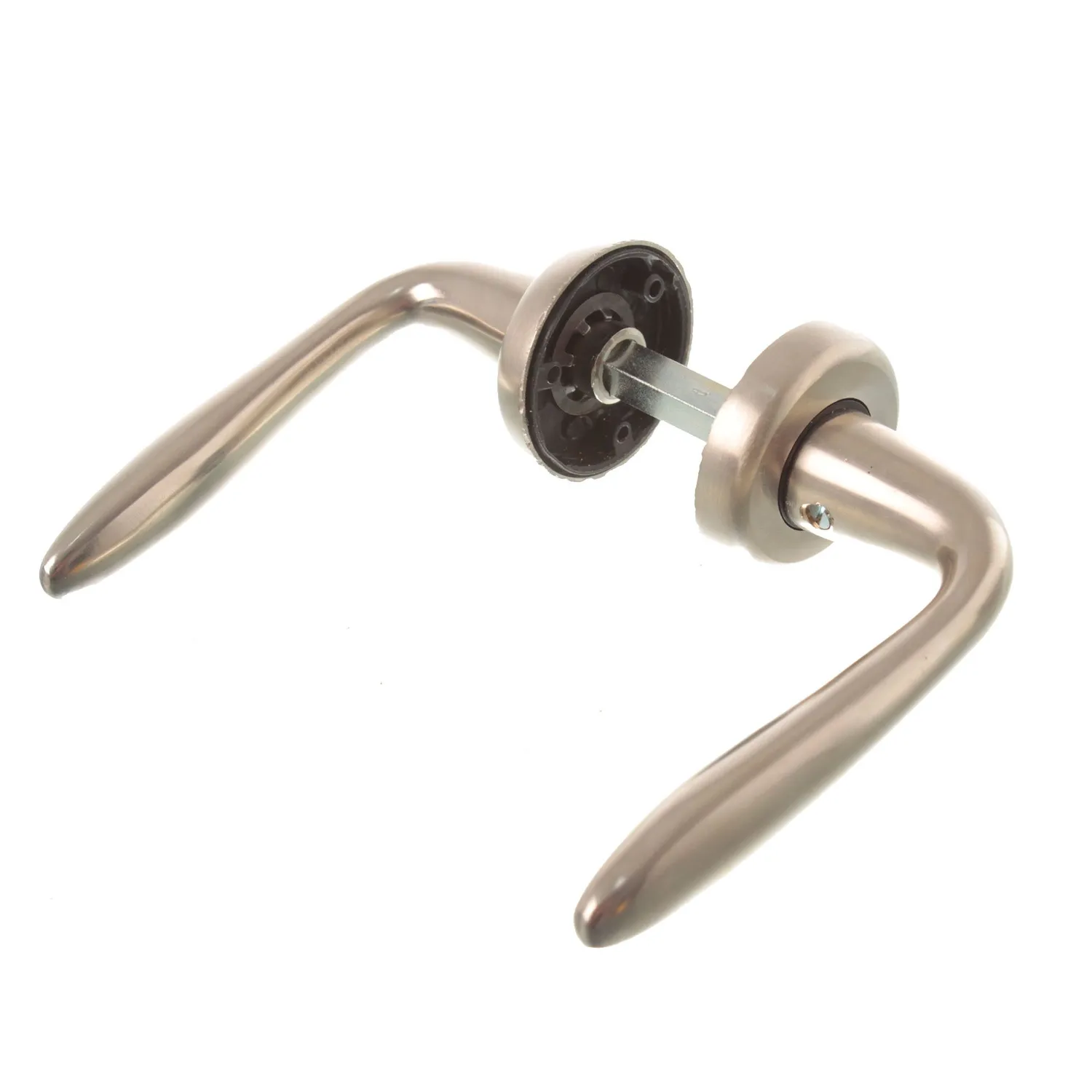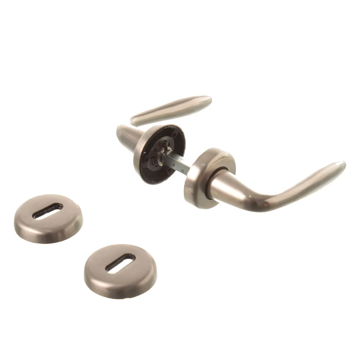 Dale un toque de elegancia a tus puertas con la Manija doble balancín Capri con roseta + bocallave platil. Su diseño moderno y color platil transformará cualquier ambiente, brindando un estilo único y sofisticado.