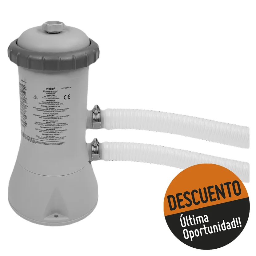 • Características:Filtro 1000 GL (220-240 v), capacidad: 3,785 litros por hora. Para piscinas con marco tamaño familiar. Fácil instalación, fácil de limpiar, cartuchos de filtro recambiables tipo A y bajo costo de mantenimiento.