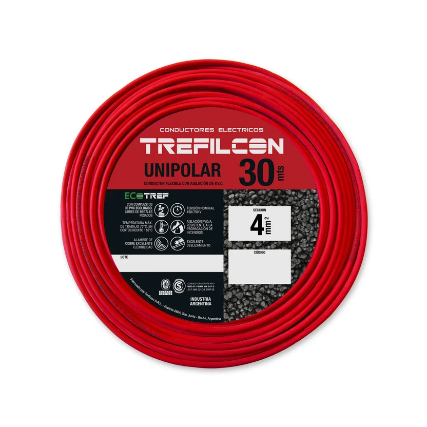 Si estás buscando un cable de alta calidad para tus instalaciones fijas, el Cable Unipolar 4 mm2 Rojo 30 m de Trefilcon es la opción ideal. Este cable, fabricado en Argentina, te ofrece la seguridad y resistencia que necesitas para tus proyectos eléctricos. Con su certificación Bureau Veritas, puedes estar seguro de que estás adquiriendo un producto confiable y duradero.