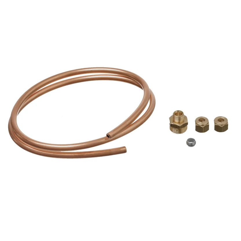 1 buje reductor 1/4" M X 1/8" H,1 red de bronce 1/2" x 1/4" MM,1 tuerca de bronce 1/4",1 virola aluminio 5/16" y 1 caño de cobre 5/16" x 60 cm
