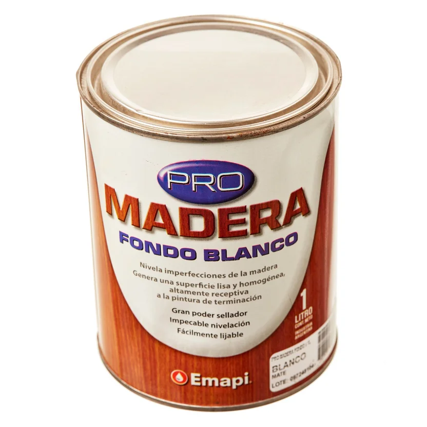 Dale a tus proyectos de madera el acabado perfecto con el Fondo Blanco Pro Madera de Emapi. Este sellador de gran poder te ayudará a nivelar las imperfecciones de la madera, generando una superficie lisa y homogénea, ideal para recibir la pintura de terminación. Su fácil lijado te permitirá obtener un resultado impecable.