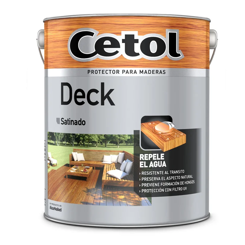 Este protector para madera Deck de Cetol, con acabado satinado, es un impregnante que penetra profundamente sin formar película superficial, evitando que se cuartee o descascare. Con un rendimiento de 8 m2 por capa, y un contenido de 4 L, es la opción ideal para proteger tus pisos de madera.