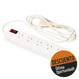 5 tomacorrientes con toma de tierra. Serie Plasnavi. Cable de tres conductores de 0,75 mm2. Dimensiones de 27,9 x 5,6 x 3,5 cm. Interruptor incorporado.
