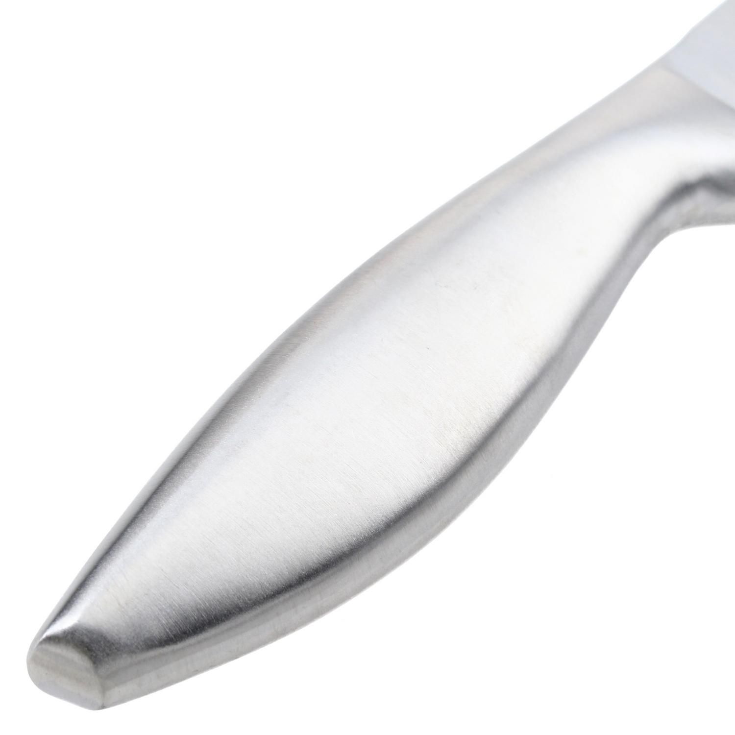 Este cuchillo, fabricado en China, está hecho completamente de acero inoxidable, tanto la hoja como el mango. Su diseño es de estilo nórdico, con un largo de 15 cm, perfecto para tareas de cocina doméstica. Se vende en formato granel y es una pieza única.