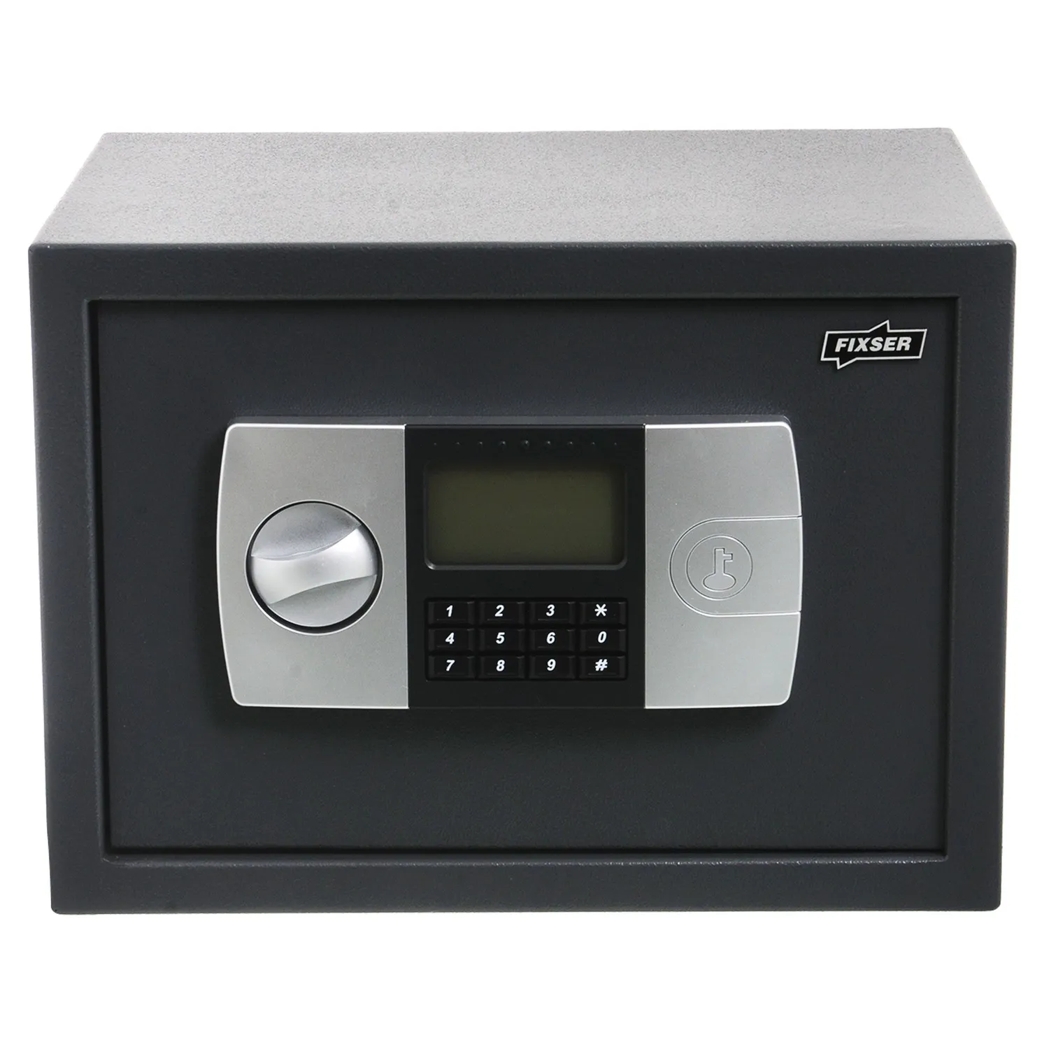 Esta caja fuerte digital está fabricada en hierro con pintura epoxi, lo que la hace resistente a la corrosión y al desgaste. Su tamaño compacto de 35 x 25 x 25 cm la hace ideal para guardar en cualquier lugar de tu hogar u oficina. Además, cuenta con un display digital LCD que te permite visualizar el código de acceso y un sistema de apertura con llave para mayor seguridad. La Caja de seguridad digital LSD 16.3 l de Fixser es la mejor opción para proteger tus objetos de valor.