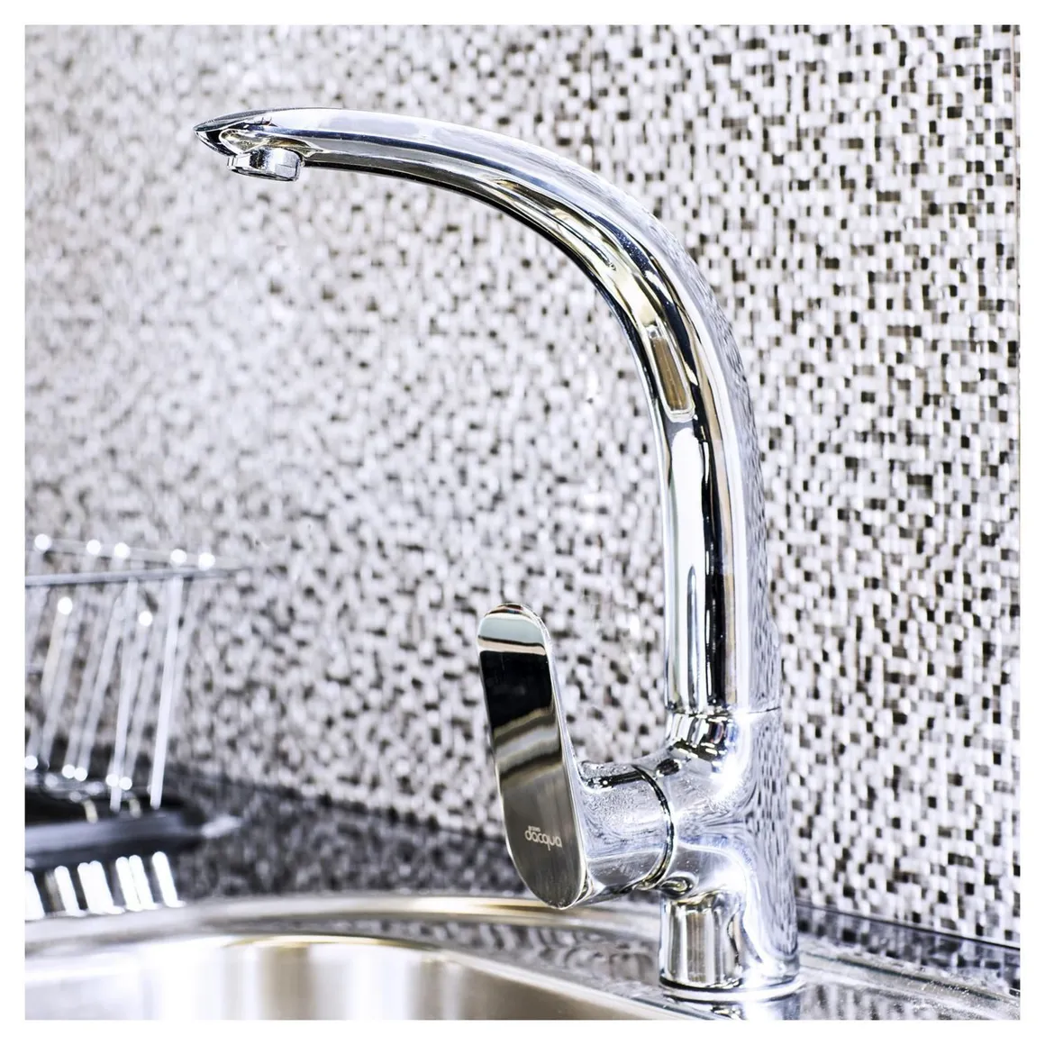 Dale un toque de elegancia a tu cocina con la Grifería monocomando vertical Vittorio de Sensi D' Acqua. Su diseño brillante y cromado, con un acabado que deslumbra, transformará tu espacio en un ambiente moderno y funcional. ¡Renová tu cocina con estilo!