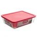 ¡Dale un toque de practicidad y estilo a tu cocina con la Fuente rectangular de vidrio de 2.8 L con tapa! Ideal para guardar tus comidas y llevarlas a donde quieras. Su diseño industrial y color transparente con detalles en rojo la hacen perfecta para cualquier ocasión.