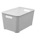 Este canasto, de color blanco, tiene un diseño simil ratán que le da un toque elegante y moderno. Con sus medidas de 43.5 cm de ancho, 22.7 cm de alto y 29.8 cm de profundidad, ofrece un espacio amplio para guardar tus pertenencias. Fabricado en plástico resistente, este canasto es ideal para organizar tu hogar y mantener tus objetos a la vista.