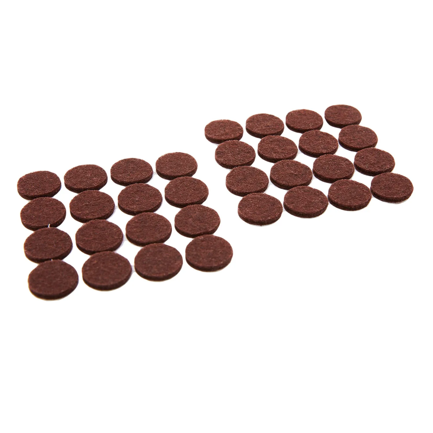 Estos fieltros circulares de Suprabond están hechos de fieltro de alta calidad, con un diámetro de 20 mm. Vienen en un pack de 32 unidades, color marrón, y tienen una garantía de 6 meses. Son de origen argentino y son ideales para proteger tus pisos y muebles de rayones y ruidos.