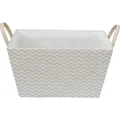 Dale un toque de estilo a tu hogar con la Caja de tela zigzag 37 x 20 x 27 cm. Esta caja, con su diseño moderno y elegante, es ideal para organizar tus pertenencias y mantener tu espacio ordenado. Su material de tela resistente y sus asas de cuero le dan un toque sofisticado, mientras que su tamaño práctico te permite guardar una gran variedad de objetos. ¡No pierdas la oportunidad de darle un toque especial a tu hogar con esta caja de tela tan versátil!