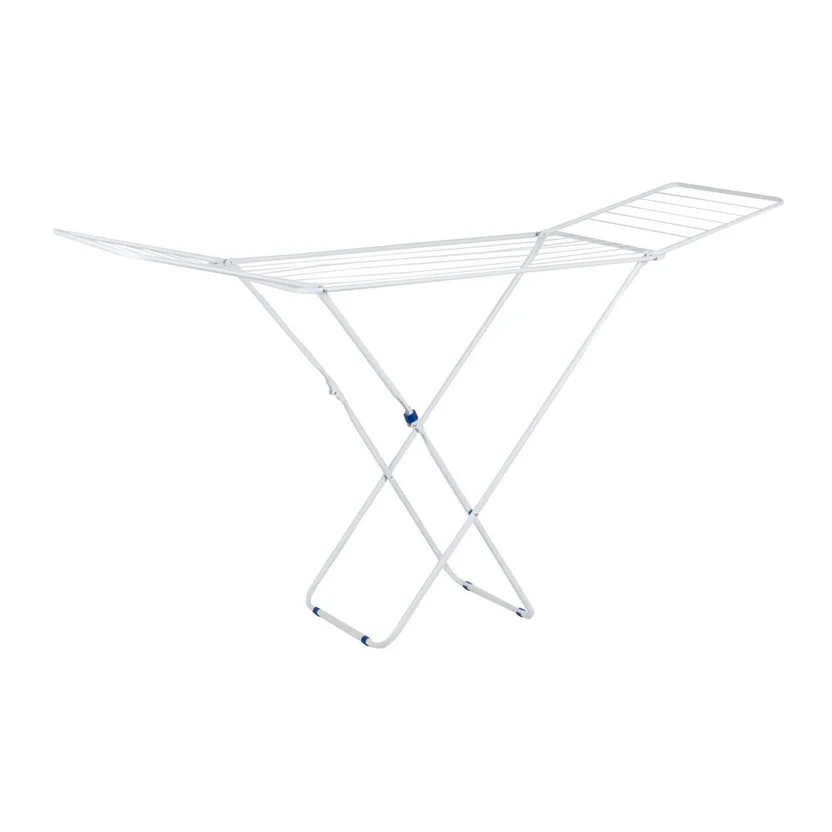 Este tendedero, fabricado en metal resistente, ofrece una amplia superficie de secado con sus 182 cm de largo y 50 cm de ancho. Su diseño con alas te permite colgar más prendas, maximizando el espacio disponible. Además, es plegable, lo que facilita su almacenamiento cuando no está en uso. Con un peso de solo 2 kg, es fácil de mover y colocar donde lo necesites.
