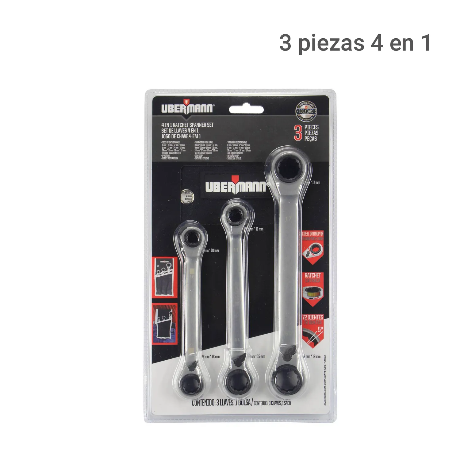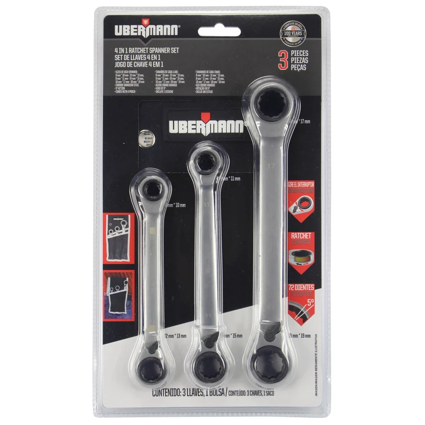 ¡Renová tu caja de herramientas con el Set de 3 llaves combinadas Ubermann! Este set incluye 4 en 1, ofreciendo versatilidad y eficiencia en cada tarea. Con una garantía de 100 años, estas llaves son una inversión a largo plazo para cualquier proyecto.