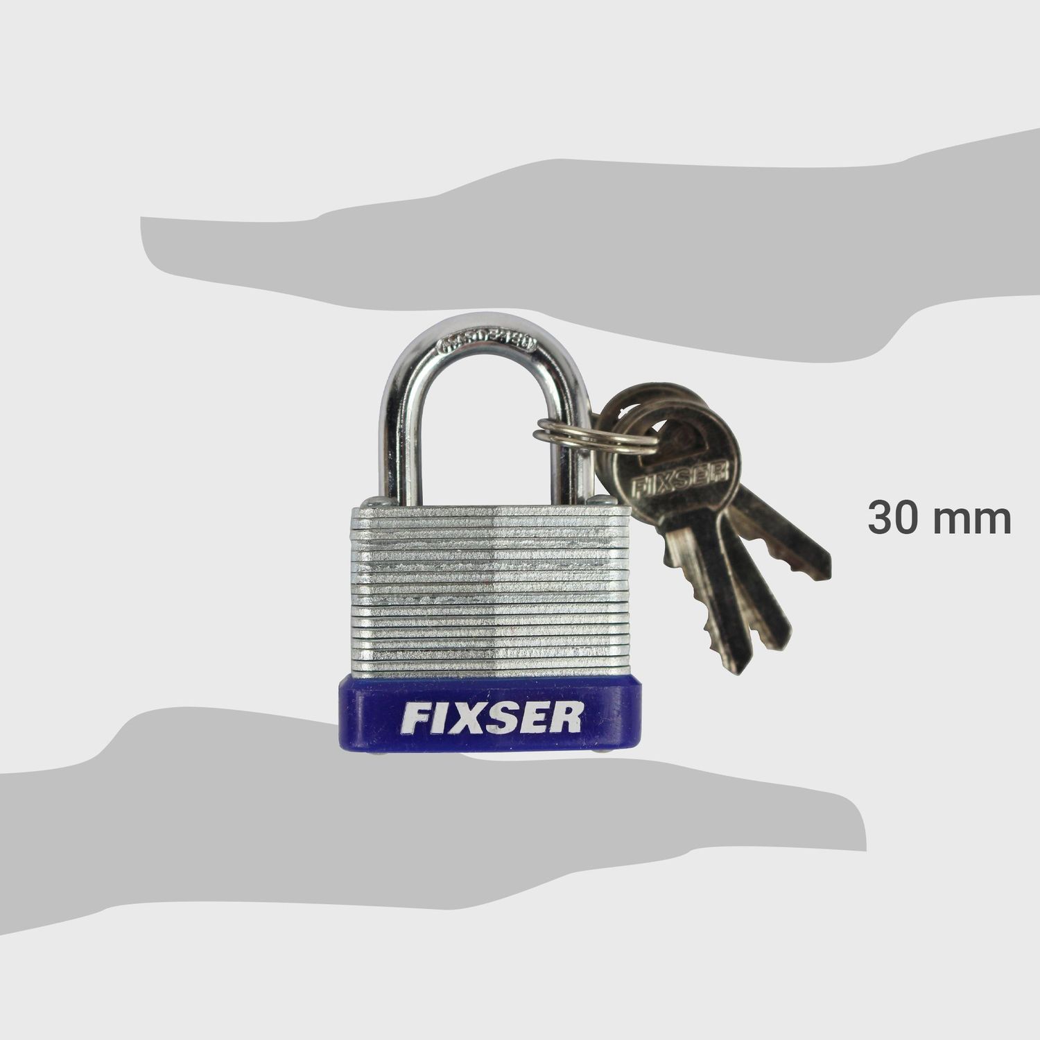 El Candado Laminado FX 30 mm de Fixser es la solución ideal para proteger tus pertenencias con seguridad y tranquilidad. Fabricado con acero y niquel, este candado te ofrece resistencia y durabilidad, ideal para asegurar puertas, cajones, herramientas y mucho más. Su diseño robusto y su llave de alta calidad te brindan la confianza que necesitas para mantener tus objetos valiosos a salvo.