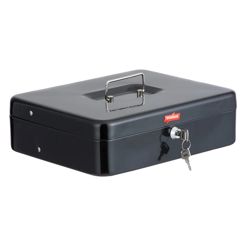 Esta caja fuerte Fixser cuenta con una cerradura mecánica y un práctico portamonedas. Sus dimensiones son ideales, con 30 cm de ancho, 24 cm de profundidad y 9 cm de alto. Además, incluye dos copias de llaves para tu mayor tranquilidad. Su peso empacado es de 2 kg.