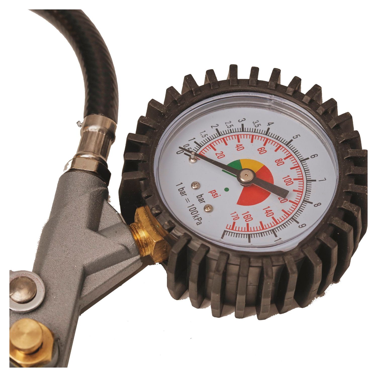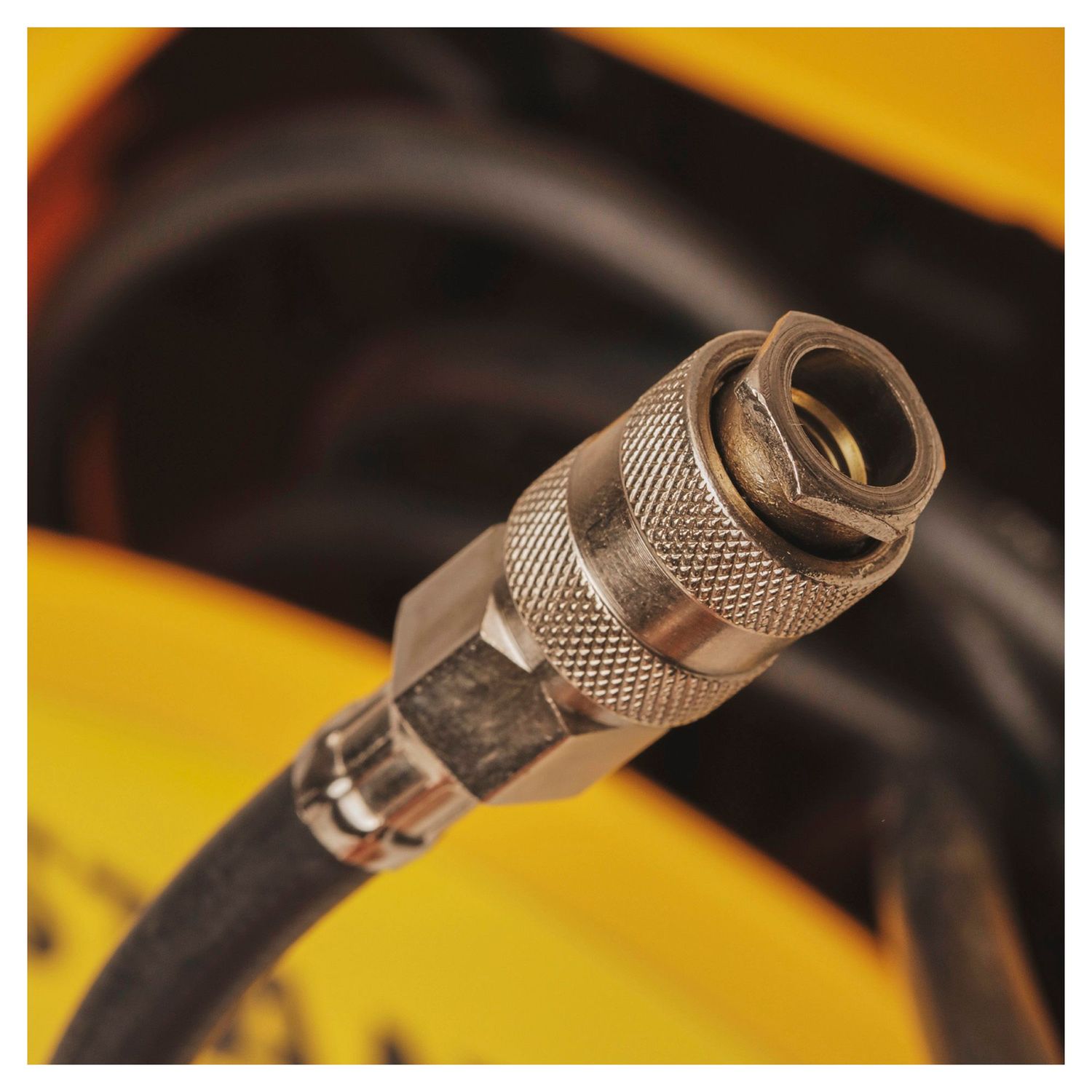 Este compresor se destaca por su bajo mantenimiento, ya que no requiere relleno de aceite, y su práctico compartimiento para guardar accesorios. Viene equipado con una pistola sopladora, un kit de 3 agujas, boquilla de soplado y una manguera de goma de 3 metros, brindándote todo lo necesario para empezar. Con una presión máxima de 8 bar y un caudal máximo de 180 L/min, es la herramienta perfecta para una amplia gama de tareas.