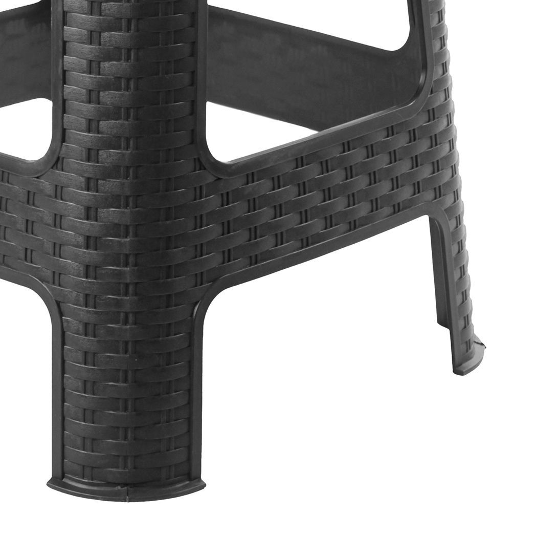 La Banqueta simil rattán negra es apilable, lo que la hace ideal para ahorrar espacio. Además, su peso máximo soportado es de 90 kg, lo que la convierte en una opción segura y confiable. Su material de plástico la hace fácil de limpiar y mantener, y su color negro combina con cualquier estilo de decoración. ¡No te preocupes por el armado, ya que esta banqueta viene lista para usar!