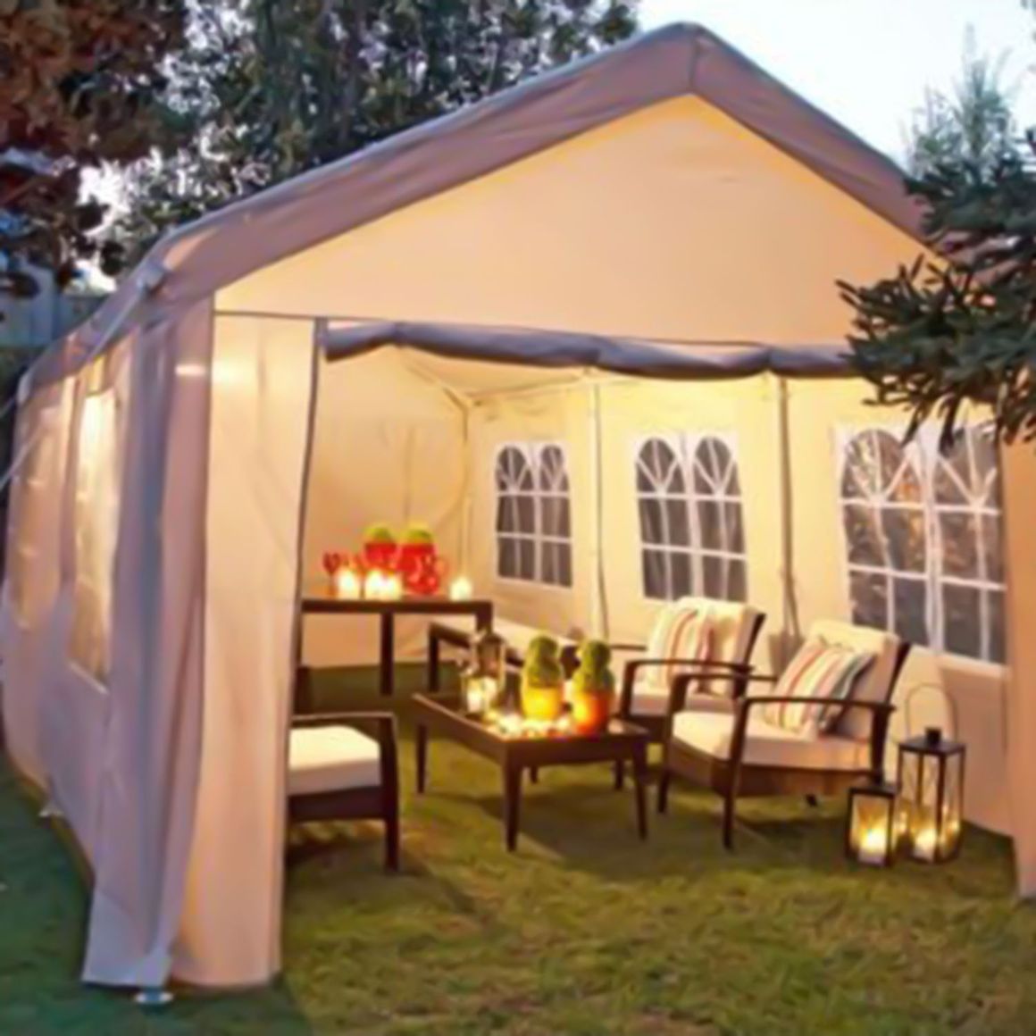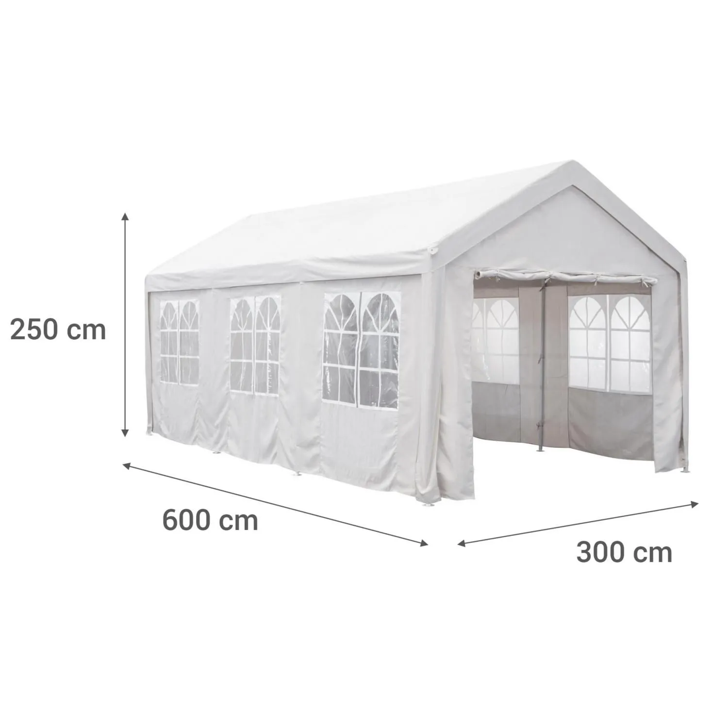 Este gazebo, fabricado con metal y nylon, es ideal para uso exterior. Sus cortinas te brindan privacidad y protección. Tené en cuenta que este producto no es apto para lluvia o nieve. Sus medidas son de 3 x 6 m, con una altura de 250 cm y un ancho de 300 cm.