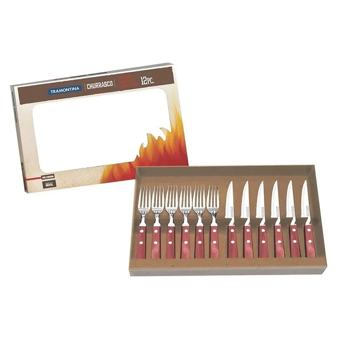 Disfruta de tus asados con el Set de 12 cubiertos para asado Polywood de Tramontina. Este set incluye 6 cuchillos y 6 tenedores, perfectos para cortar y servir tus carnes favoritas. Con su diseño elegante y resistente, este set es ideal para cualquier ocasión.