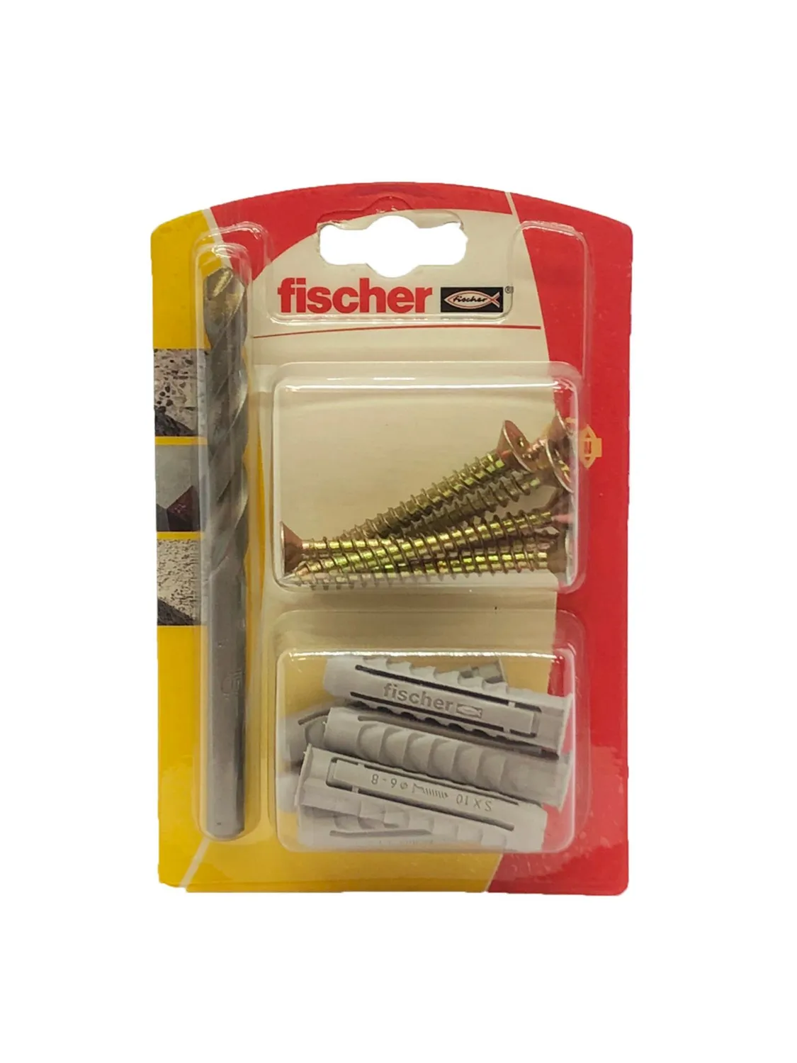 Este set de Fischer, de origen argentino, es perfecto para tus necesidades de fijación. Está fabricado en nylon y tiene un diámetro de 10 ml. El contenido incluye BST 6 tacos SX10 + TMF 6x60 + WHS.