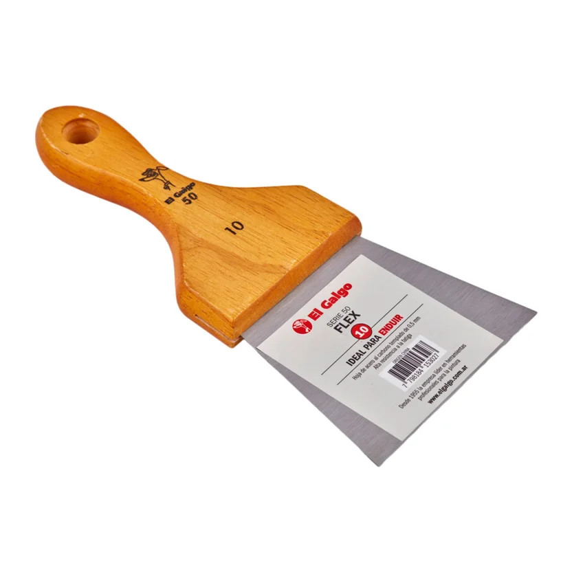 La Espátula de metal 10 cm de El Galgo está fabricada con materiales de alta calidad, lo que garantiza su durabilidad y resistencia. Su hoja de metal de 10 cm de ancho y 20 cm de largo te permite trabajar en áreas pequeñas y grandes con precisión. Además, su mango de madera te brinda un agarre cómodo y seguro, evitando que se te resbale durante el trabajo.