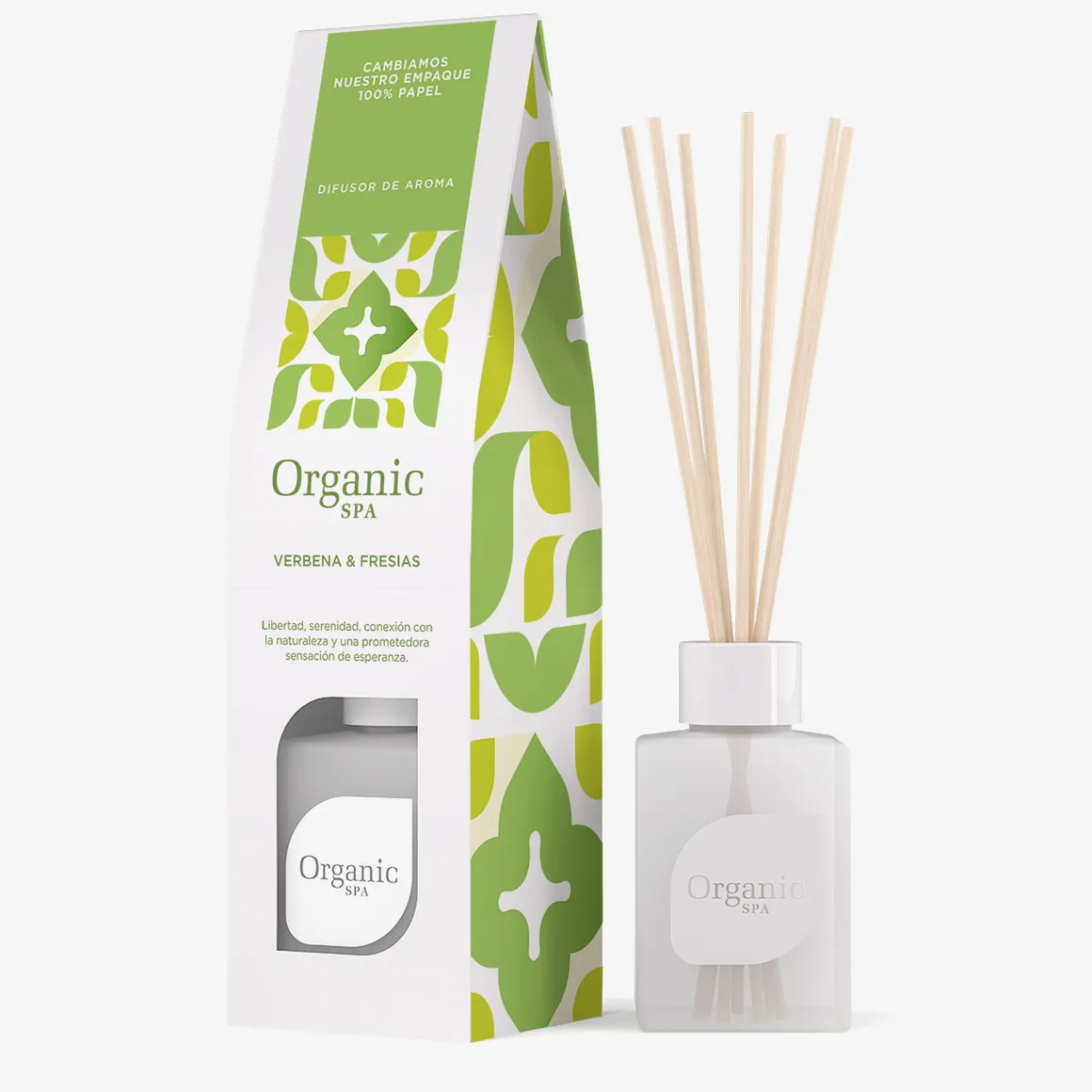 Dale a tu hogar un toque de frescura con el Difusor de Ambiente Verbena & Fresias de Organic SPA. Su aroma frutal, verde y acuoso te transportará a un oasis de paz y tranquilidad. Con su diseño elegante y su fragancia refinada, este difusor es perfecto para crear un ambiente acogedor y aromático en cualquier espacio.