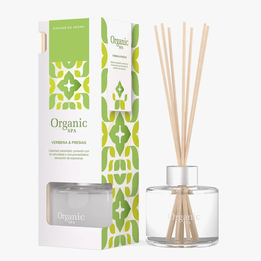 El Difusor Home Verbena y Fresias de Organic Spa es un producto de origen argentino, con un tamaño compacto de 24 cm de largo, 18 cm de alto y 23 cm de ancho. Su uso es sencillo: solo debes desenroscar el collarín plateado, retirar la tapa de PVC, volver a enroscar el collarín y colocar las varillas de bambú en la fragancia. Para una mejor aromatización, se recomienda rotar las varillas cada 3 o 4 días.