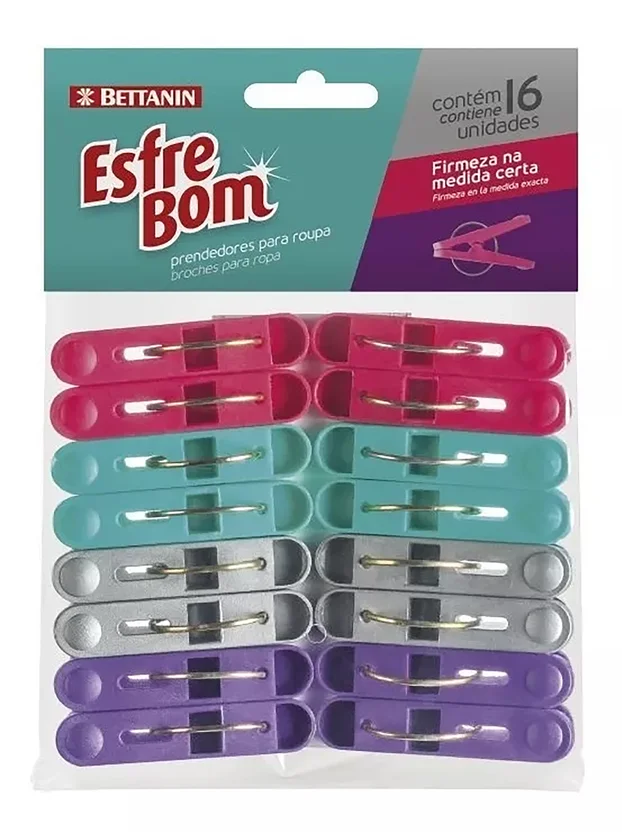 ¡Dale un toque de color y practicidad a tu colada con el Pack de 16 broches para ropa de plástico Esfrebom! Estos broches multicolores son ideales para colgar tu ropa de manera segura y eficiente. ¡No esperes más para tener la ropa impecable!