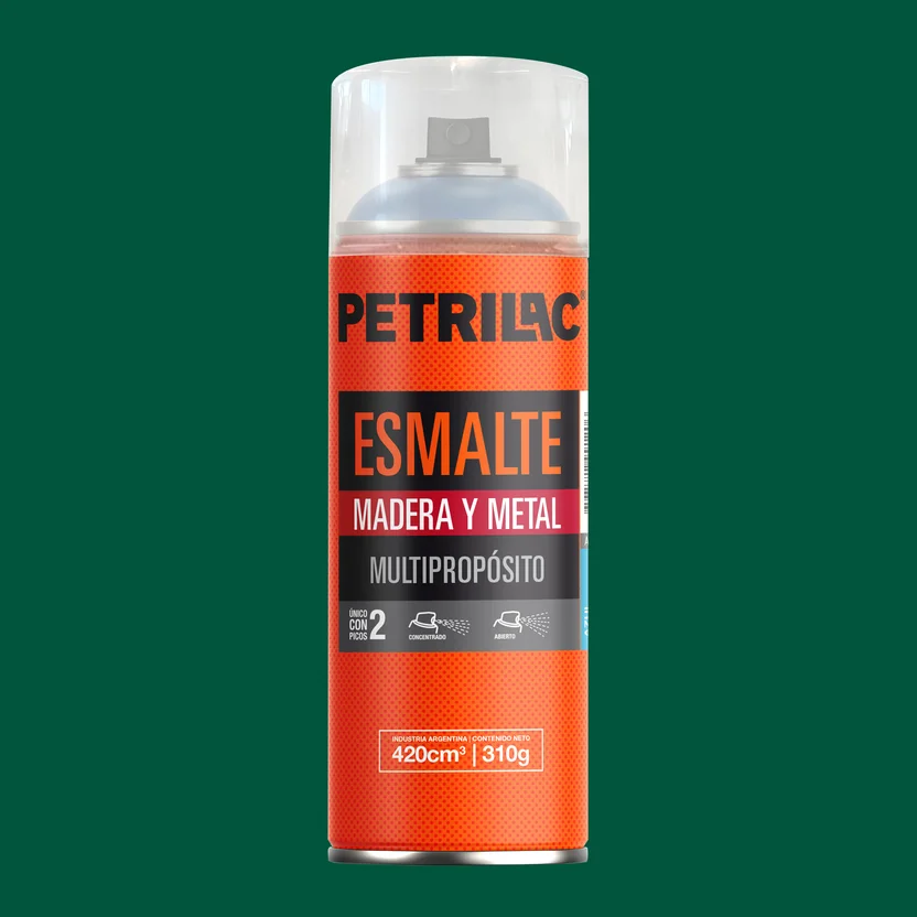 Esta pintura en aerosol de la marca Petrilac es perfecta para aplicar sobre maderas y metales. Su base es solvente y ofrece un rendimiento de 2 m2 por capa. Además, es lavable y cuenta con protección UV. El tiempo de secado final es de 7 días, y el color es verde noche.