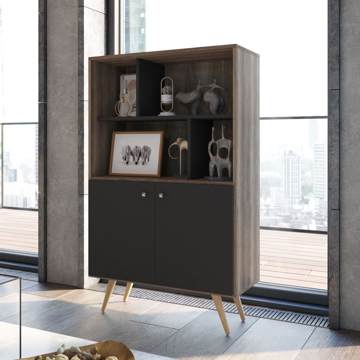 Dale un toque de estilo escandinavo a tu hogar con la Biblioteca Escandinava Dos Puertas Nebraska Gris de Delos. Esta biblioteca, con sus estantes y dos puertas, es ideal para organizar tus libros, objetos decorativos y todo lo que quieras mantener a la vista. Su diseño moderno y elegante, con patas de madera maciza, la convierte en un complemento perfecto para cualquier ambiente. ¡No pierdas la oportunidad de tenerla en tu casa!