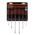Este juego de destornilladores está fabricado con acero cromo vanadio de alta calidad, lo que garantiza su resistencia y durabilidad. Además, cuenta con un tratamiento anticorrosión que lo protege del óxido y la humedad. El juego incluye un estuche rígido de plástico para que puedas guardar tus destornilladores de forma segura y ordenada.
