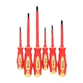 Este juego de destornilladores está fabricado con varilla de acero sup11 y mango soft ergonómico, lo que garantiza su resistencia y durabilidad. Además, las puntas están aisladas, lo que te permite trabajar con seguridad en instalaciones eléctricas. El juego incluye 3 destornilladores philips aislados y 3 destornilladores planos aislados, con diferentes tamaños para adaptarse a tus necesidades. Con una garantía de por vida, este juego de destornilladores te acompañará durante años.