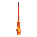 Este destornillador está fabricado con materiales de alta calidad, como varilla de acero Sup11 y mango soft ergonómico, lo que garantiza su durabilidad y comodidad de uso. Su diseño incluye un aislamiento de 1000V, certificado para trabajar con seguridad en instalaciones eléctricas. Además, su punta plana te permite trabajar con precisión en diferentes tipos de tornillos.