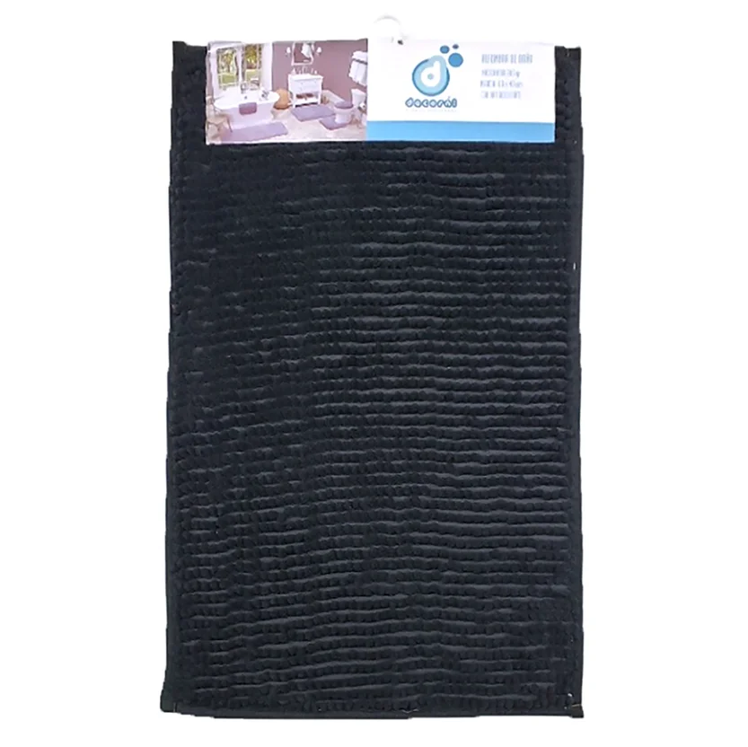Esta alfombra de baño tiene un tamaño de 40 x 60 cm, lo que la hace ideal para espacios pequeños. Está fabricada con 100% poliéster, lo que la hace suave al tacto y fácil de limpiar. Además, es antideslizante, lo que la hace segura para usar en el baño. Su color negro le da un toque de elegancia a tu baño.