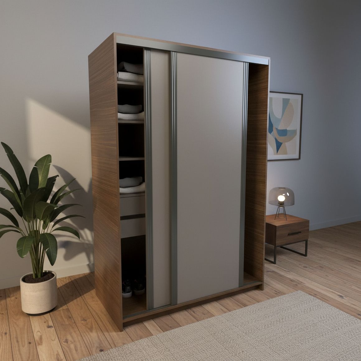 Complementa tu Placard Senior 2 puertas corredizas con 2 cajones nogal gris