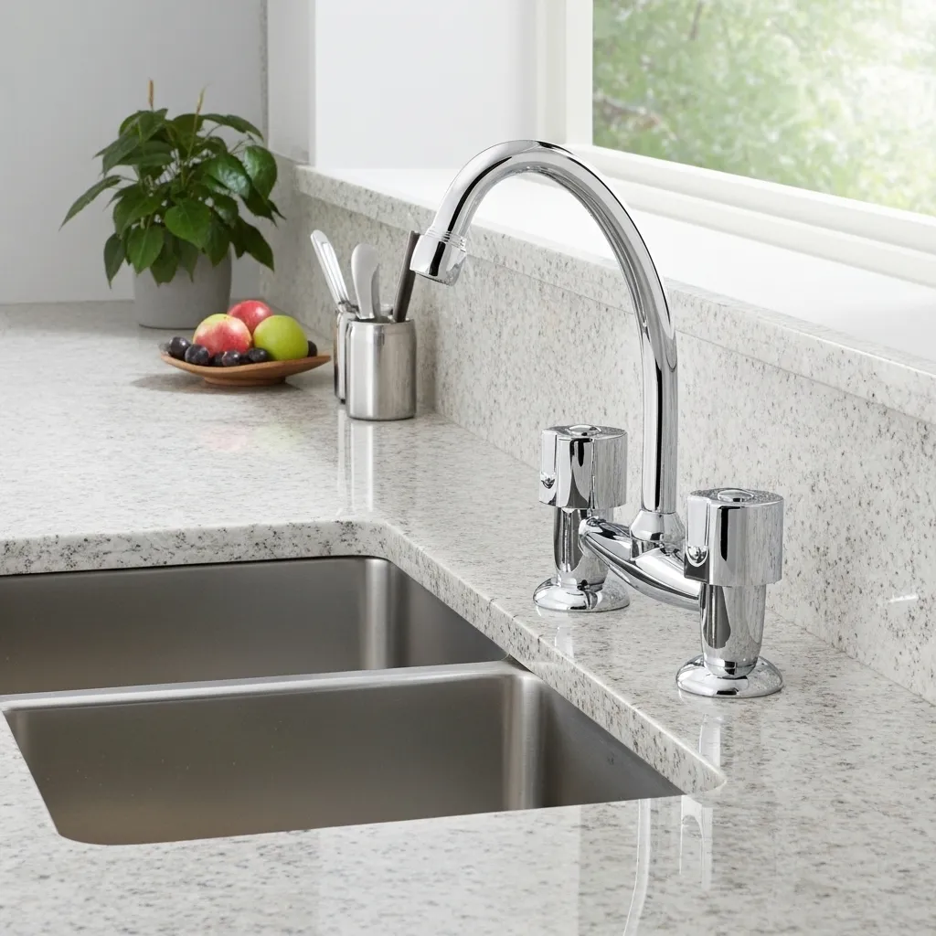 Renová tu cocina con la Grifería bimando para cocina de pared Puebla, un grifo cromado con un diseño que combina estilo y funcionalidad. Con su acabado cromado, este grifo le dará un toque moderno a tu espacio.
