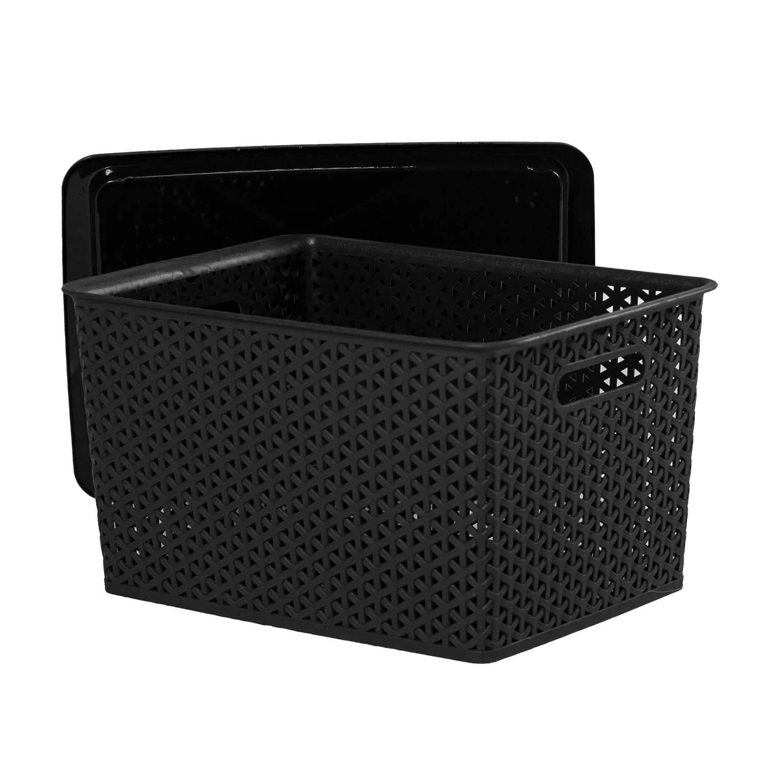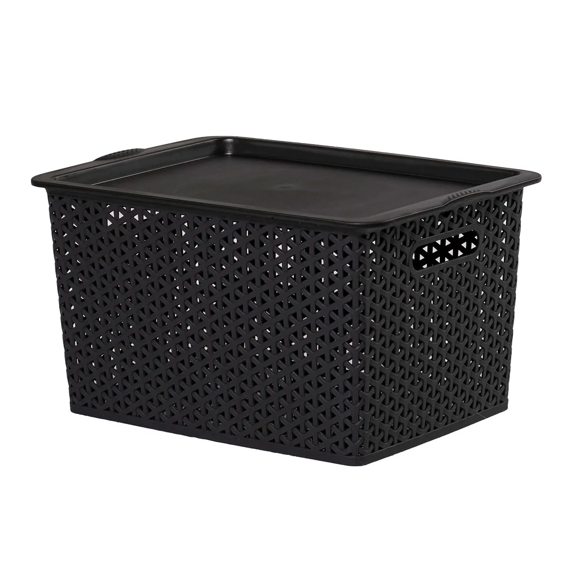 Caja plástica con tapa Ratán negra 15 Lts. 41 x 30 x 22 cm