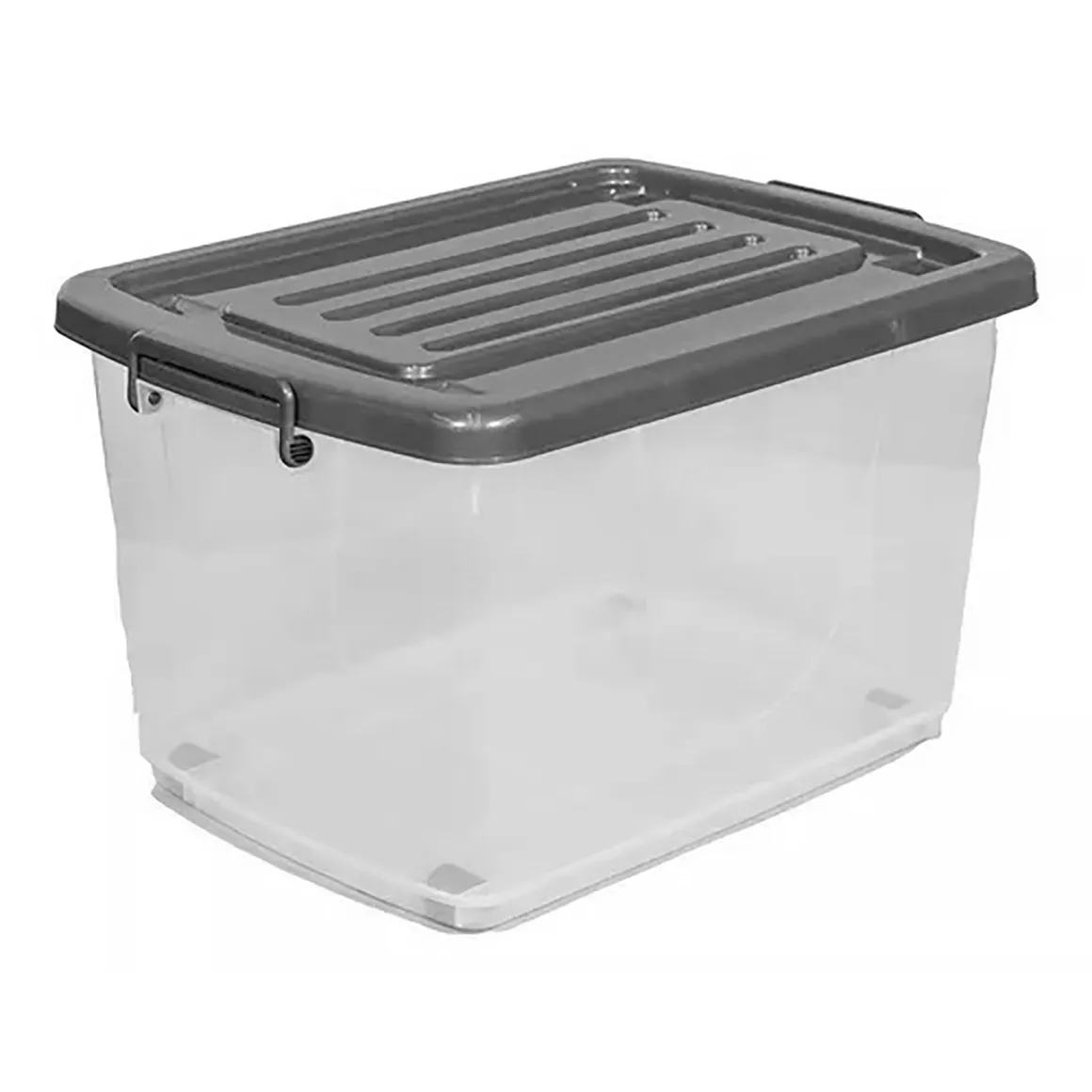 Caja plástica con tapa Tokio trasnparente 80 Lts. con ruedas 46 x 64 x 40 cm
