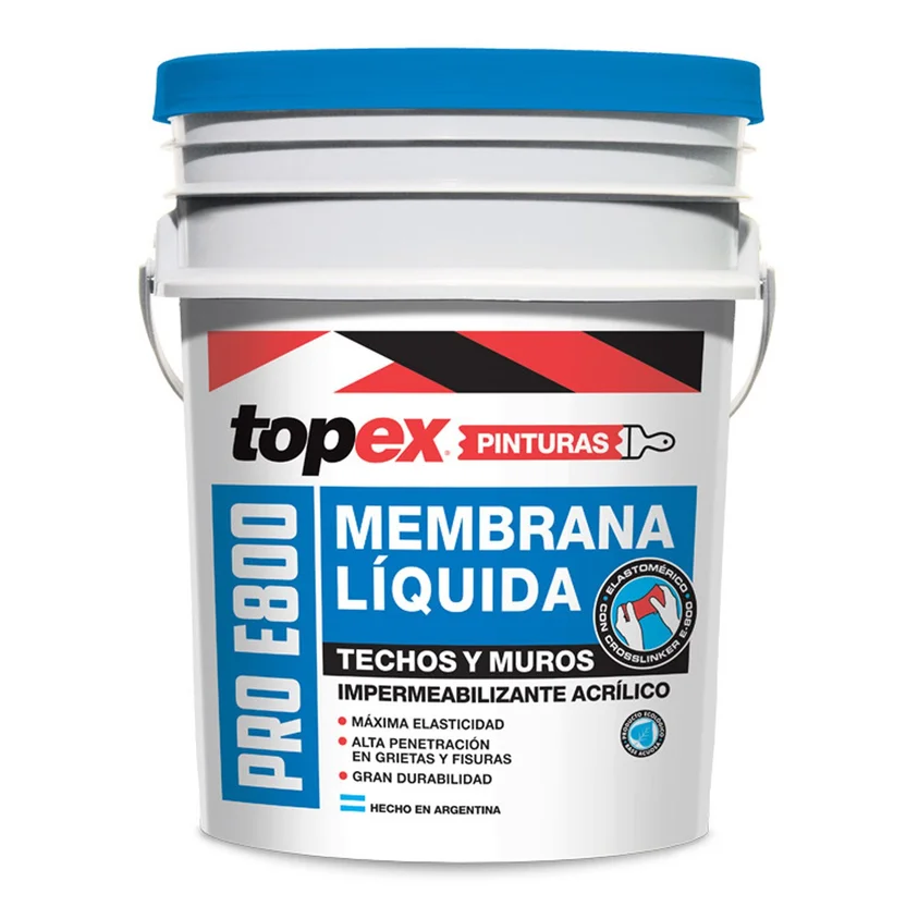 Esta membrana líquida, de aplicación exterior, es perfecta para techos y muros. Su fórmula a base de agua, con protección UV y resistencia al agua, garantiza un acabado satinado y duradero. Con un rendimiento de 1 m2 por capa y un tiempo de secado final de 12 horas, es la elección ideal para tus proyectos. Además, es de origen argentino y cuenta con la calidad de la marca Topex.