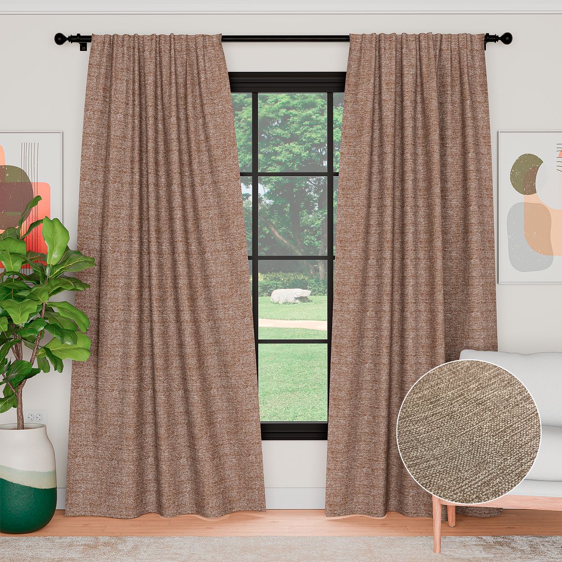 Complementa tu Cortina de tela est text café 130 x 210 cm