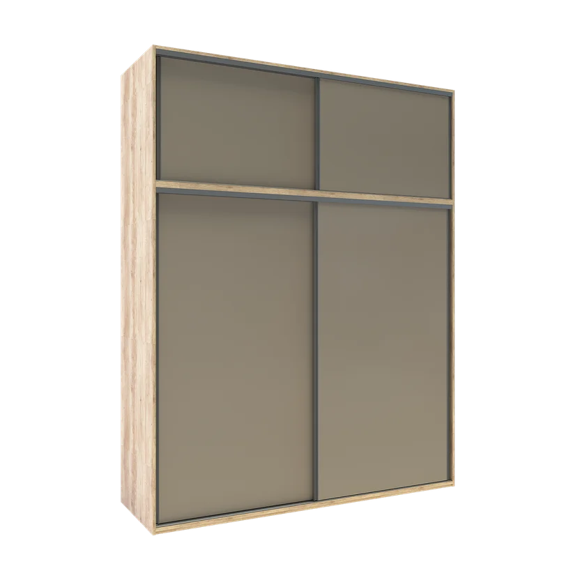 Placard 2 puertas corredizas con 2 cajones MDP roble natural y gris cubanita