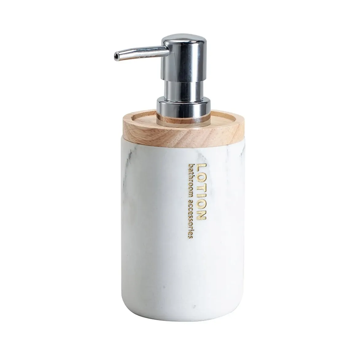 Dispensador de jabón Marmol de poliresina y madera blanco