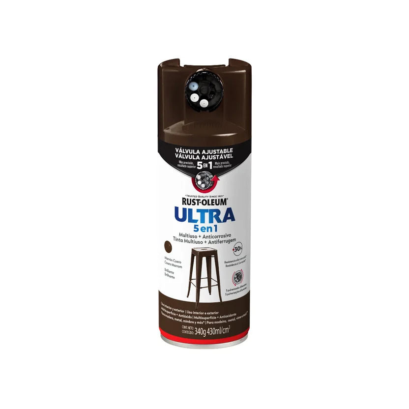 Dale un toque de color marrón brillante a tus proyectos con la pintura en aerosol multiuso Rust-Oleum Ultra 5 en 1. Con 340 g de pintura, podés renovar superficies de metal, madera, concreto y más, tanto en interiores como exteriores. ¡Es ideal para darle un acabado profesional a tus trabajos!